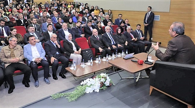 Saygı duruşu ve İstiklal Marşı okunması ile başlayan programın açılış konuşmasını yapan Başkan Özlü “Bu konferanslardaki amacımız gençlerimizin Türkiye’nin önde gelen isimleri ile tanışması ve onları tanımaları…Üniversite şehriyiz. Yaklaşık 35 bin civarı öğrenci kitlemiz var. Gençlerimizin ve halkımızın bu imkanlardan faydalanması için çalışıyoruz. Konuşmacılarımızdan nasıl bir Türkiye hayal ediyorlar, önümüzdeki dönemde; 2023-2053-2071’de arzu edilen Türkiye, hayal edilen Türkiye’yi gerçekleştirmek için hangi engeller var ve bunları aşmak için çözüm yöntemleri neler gibi sorulara yanıt vermelerini istiyoruz.” ifadelerini kullandı.