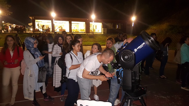Erguvan Tesislerinde gerçekleştirilen gece gözlemine katılımın yoğun olduğunu vurgulayan Göktepe şenliğin ilerleyen yıllarda da devam etmesini planladıklarını dile getirerek “Bu etkinlik sonunda tüm öğretmenlerimiz astronomi eğitimlerini alarak programı tamamlamış olacaklar. Okullarında okuttukları fen, fizik, coğrafya derslerinde burada öğrendiklerini öğrencilerine aktaracaklar. Hedefimiz 68 bin öğrenciye öğretmenleri aracılığı ile ulaşmak. Hocalarımız gönüllü. İstanbul Üniversitesi, Akdeniz Üniversitesi, Ege Üniversitesi ve Ankara Üniversitesinden alanında duayen olmuş hocalarımız. Hiç bir ücret talep etmeden çalışıyorlar. Erguvan tesislerinde gece gözlemlerini yaptık. Jüpiter ve ayı net bir şekilde görüntüledik. 3 teleskopla gözlemlerimizi gerçekleştirdik. Şenlik Pazar günü sertifika töreni ile sona erecek. Yüksek bütçeli ve sponsorlar aracılığı ile yürütülen bir proje. Ayrıca Düzce Valiliğimiz, Belediye Başkanlığımız ve Milli Eğitim Müdürlüğümüz bizi destekliyor. Şenliğin önümüzdeki yıllarda devam etmesini planlıyoruz. Ramazan ayı olmasına rağmen katılım güzel” diye konuştu.