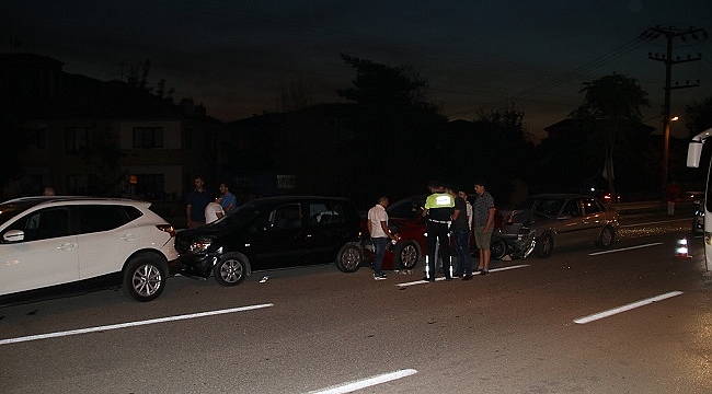 Edinilen bilgilere göre, D-100 karayolu Çoban kavşağında, Bolu istikametine giden R. K. idaresindeki 81 EY 370 plakalı araç aynı istikamette giden düğün konvoyunun en arkasında bulunan M. Y. idaresindeki 11 SK 453 plakalı araca çarptı. Çarpmanın etkisi ile durmayan araç önündeki O.Ö. idaresindeki 54 YA 711 plakalı araca, bu araç da önünde giden A.B. idaresindeki 34 RY 6852 plakalı araca çarptı. Kazada araçlarda maddi hasar meydana gelirken araç sürücülerinden R. K. yaralandı. Yaralı sürücü sağlık ekiplerinin yaptığı ilk müdahalenin ardından Atatürk Devlet Hastanesi Acil Servisi’ne kaldırılırken, kazayla ilgili olarak inceleme başlatıldı.,
