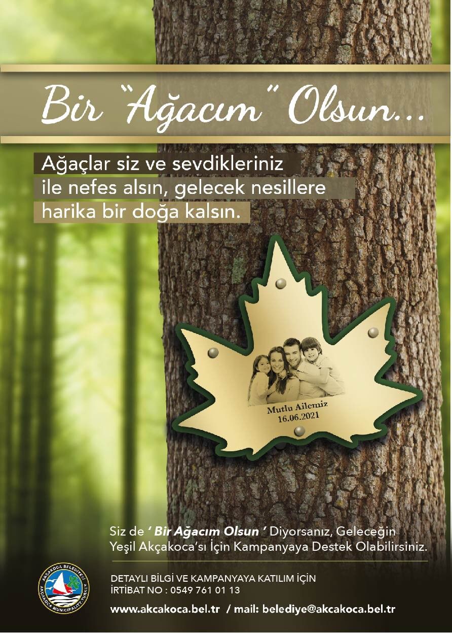 SADECE KENDİNİZ İÇİN DEĞİL SEVDİKLERİNİZ İÇİN DE KAMPANYAYA KATILABİLİRSİNİZ“ Şehrimizin ve gençlerimizin geleceğini ilgilendiren böyle önemli kampanyalarda birlik olmamız ve elimizi taşın altına koymamız gerekir “ diyen Başkan Yanmaz, “ Akçakoca için ‘Bir Ağacım Olsun’ kampanyasına bağış yapılacak her ağaç için; ömür boyu bakım, sulama ve ağacın temel ihtiyaçları belediyemiz tarafından karşılanacaktır. Sevgili Akçakocalı hemşerilerim, kampanyaya ilk ağacı ben bağışlayarak bir iyilik akımı başlatıyorum, siz de ‘Bir Ağacım Olsun’ diyerek çocuklarımıza daha yeşil bir Akçakoca bırakabilirsiniz. Kendiniz, sevdikleriniz, aile büyükleriniz ve adını geleceğe taşımak istediğiniz herkes için ağaç bağışı yapabilirsiniz. Bağışlanan her ağacın bir künyesi olacak ve ağaç kimin adına bağışlandıysa fotoğraflarıyla beraber ağacın gövdesinde yer alacak “ ifadelerinde bulundu.