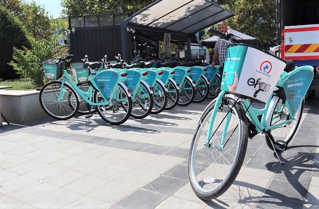 Düzce’de trafik yoğunluğunu büyük ölçüde azaltarak hem zamandan hem bütçeden tasarruf sağlayacak olan Paylaşımlı bisikletler Düzce’de çeşitli noktalarda kullanıma açıldı. “Akıllı bisiklet Paylaşım Sistemi” (DÜBİS) adı verilen sistem ile birlikte Düzce’de şehir içinde trafik yükünün büyük ölçüde hafiflemesi, vatandaşların da hem zamandan hem de bütçeden tasarruf sağlamaları hedefleniyor.Kentte ilk olarak 300 adet bisiklet kullanıma açılırken, önümüzdeki günlerde elektrikli scooterlar da Düzcelilerin hizmetine sunulacak.