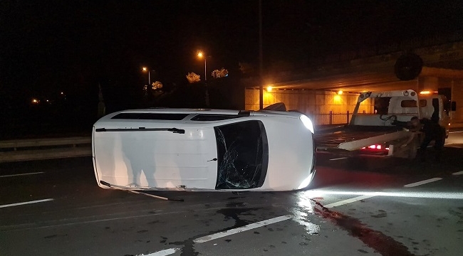 Kervan Kavşağında alkollü sürücünün kontrolünü kaybettiği hafif ticari araç takla attı.