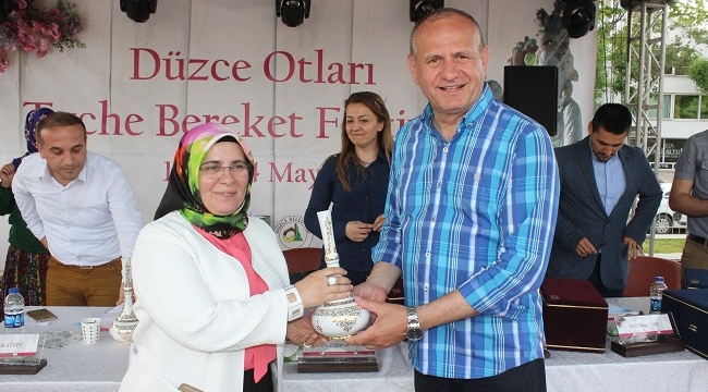 Düzce'de bu yıl 3. kez düzenlenen festivalin davetlisi Ayten Usta, kadın girişimcilerin otlarla hazırladığı birbirinden lezzetli ürünleri tadarak puan verdi. Bu tür festivallerle kadınların yöresel lezzetleri gündemde tuttuğunu belirten Ayten Çetin, fast-food ürünlerinin zararlarına da dikkat çekti. Festival boyunca kadın girişimcilerin sorularını yanıtlayan Ayten Usta, "Bir kere Ot Festivali'ni 3. kez düzenleyen Düzcelilere teşekkür etmek gerekiyor. Kendi yöresel lezzetlerini çok maliyet harcamadan yemeklerde kullanmalarını takdir etmemiz gerekiyor. Festivalde yarışmaya katılanların yüzde 92'si kadındı. Bu kadınlarımız arasında çok küçük işletmelere sahip olanları vardı. Geleceğe umutla baktıklarını gördüm. Biz bu insanların ninelerinden gördüğü lezzetleri aktarmasıyla biz fast-food ile mücadele edeceğiz. Ben bunu biraz hamburger kültürü olarak da yorumluyorum. Buna karşı kadınlarımızın yapacağı çalışmalar da çok önemli. Yani kadınlarımız gıda sektöründe aktif rol aldığı sürece, fast-food karşısında alternatifimiz ciddi sayıda olacak. Bu da çocuklarımızın daha sağlıklı beslenmesini sağlayacak. Ben bu sebeple Düzce'deki festivali önemsiyorum. Her zaman da kadınlarımızın yanındayım. Güzel bir çalışma oldu. Günün hatırasına bana plaket veren Düzce Belediye Başkanımız Mehmet Keleş'e de teşekkür ediyorum" diye konuştu.