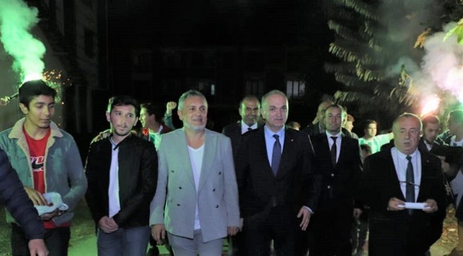 Düzce Belediye Başkanı Dr. Faruk Özlü, başkan yardımcıları ve birim müdürleri ile Aziziye mahallesinde vatandaşlar ile buluştu.Çoşkulu bir kalabalık ile havai fişekler ve meşalelerle karşılama yapan gençler, mahalle toplantısı öncesi motivasyonu artırdı. Başkan Özlü, kendisini karşılayan herkesle tek tek tokalaşırken toplantıda yaptığı konuşmasına belediye kadroları hakkında bilgi vererek başladı.