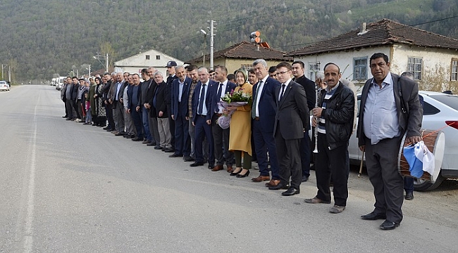 Düzce'nin Yığılca ilçe girişinde davul ve zurnalarla İlçe Kaymakamı Furkan Sancaktutar, Yığılca Belediye Başkanı Muzaffer Yiğit, AK Parti İlçe Başkanı Kerem Yalçıner, İGM üyeleri, teşkilat üyeleri ve kalabalık bir halk topluluğunca karşılanan bakan Özlü’ye Belediye Başkanı Muzaffer Yiğit tarafından çiçek takdim edildi.