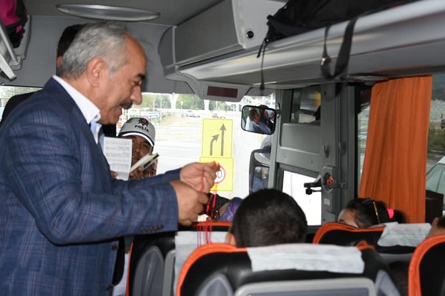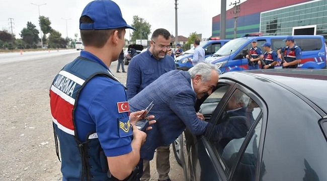 Kaynaşlı Otoyol gişelerinde İçişleri Bakan Yardımcısı Mehmet Ersoy,Jandarma trafik Kontrol Noktası ile Kaynaşlı Bölge Trafik İstasyonu’ndaki trafik denetlemelerine katıldı, araçların içlerinde bulunan kırmızı düdük ve şapka hediye etti.