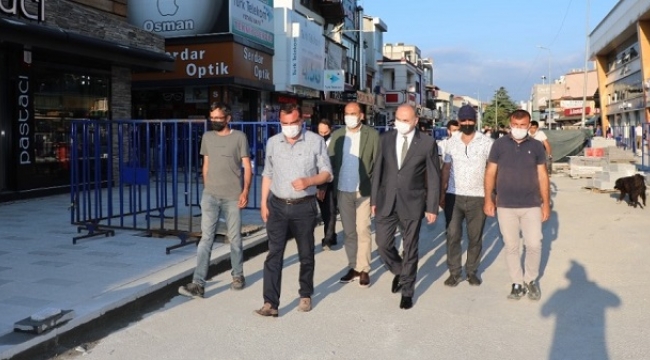"ESNAF VE VATANDAŞIMIZA TEŞEKKÜR EDİYORUZ "Caddede devam eden çalışmalar nedeniyle esnaf ve vatandaşların mağdur olmamaları için yoğun çaba sarf ettiklerini de hatırlatan Başkan Özlü; "Biz planladığımız tarihten önce çalışmalarımıza başladık. Daha önce hesapta olmayan 17 günlük kapanma durumu söz konusuydu. Biz de büyük ölçüde kapalı olan esnaflarımızı en az mağdur etmek adına çalışmalarımızı öne çekerek altyapıyı tamamladık. Taşlarımızın üretimi tamamlandığında ise örme işlemine başladık. Biz burada esnaf ve vatandaşlarımızın mağdur olmaması için gayret gösteriyoruz. Bölge esnafı ve vatandaşlarımıza gösterdikleri hoşgörüden dolayı teşekkür ediyoruz, cadde tamamlandığında burası gerçekten nezih bir yer olacak" şeklinde konuştu.
