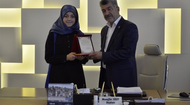 Başkan Yiğit “Öğrencimiz Rabia Atasoy’un elde etmiş olduğu bu başarı her ne kadar kendisini, ailesini ve öğretmenlerini mutlu etse de, inanın ki ilçem adına ben onlardan bin kat daha mutlu oldum. İlçemiz adına eğitime verdiğimiz katkıların bu şekilde başarılarla geri dönmesi bizleri son derece mutlu ediyor. Bu gibi başarılar bizleri daha da heveslendiriyor. Değerli öğrencimiz Rabia Atasoy’u göstermiş olduğu bu başarısından dolayı tebrik ediyor, gerek öğrencilik hayatında gerekse ileride iş hayatında başarılarının daim olmasını diliyorum. Değerli öğretmenlerimize de öğrencilerimize sağladıkları katkılardan dolayı da ayrıca teşekkür ediyorum. Bugün itibari ile eğitim ve öğretimin son gününe gelmiş bulunuyoruz. Bu vesile ile de tüm öğrencilerimizin, ailelerinin ve öğretmenlerimizin mutlu, huzurlu bir tatil geçirmelerini temenni ediyorum” dedi.