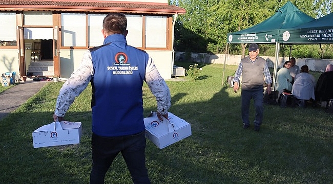 Cenaze hizmetleri kapsamında defin işleminden taziye çadırına kadar bir çok hizmeti sağlayan düzce Belediyesi, cenaze evlerinde pide ve ayran ikramına başladı.Düzce Belediyesi mücavir alanlar içerisinde ikamet eden vatandaşlar için ücretsiz olarak verdiği cenaze hizmetlerine bir yenisini daha ekledi.Mezarlıklar Müdürlüğü ve Sosyal Yardım İşleri Müdürlüğünün koordinasyonu ile cenaze hizmetleri kapsamında taziye çadırından, defin işlemlerine kadar bir çok hizmet sağlanırken, cenaze evlerine pide ve ayran ikramına da başlandı.Öte yandan Düzce Belediyesi vatandaşların hizmetine sunduğu taziye çadırlarında; belediye tarafından semaver, çay, şeker, bardak gibi malzemelerin olduğu taziye paketi de ücretsiz olarak verilmeye devam edecek.