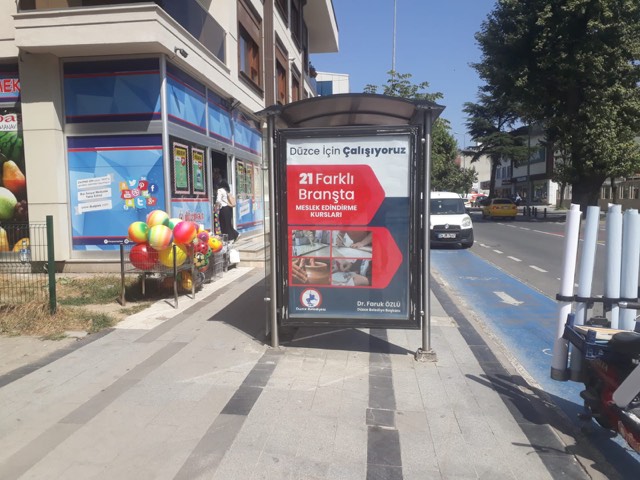 Belediye, kent mobilyalarına verdiği ilanlarla katı atık tesisinden millet bahçesine, okul projesinden meslek edinme kurslarına, toplu taşımadan mutfak sanatları merkezine, antik kent kazısından yeni itfaiye binasına kadar bir çok alanda başlattığı ve bazıları tamamlanan icraatlarını anlattı.Tanıtım görsellerinde Başkan Faruk Özlü’nün fotoğraflarının kullanılmaması dikkat çekti. İlanlarda sadece düzce Belediyesi yazısı ile logosu kullanıldı. Belediyenin daha önceki tanıtımlarında Başkan Özlü’nün büyük ebatlı fotoğraflarının kullanılması eleştiri alıyordu. Ülke genelindeki birçok belediye başkanı tanıtım faaliyetlerinde kendi fotoğraflarını kullanmak yerine, belediyenin kurumsal logosunu kullanmayı tercih etmeleri doğru iletişim stratejisi olarak değerlendiriliyordu.Düzce Belediyesi’nin de son yaptığı tanıtım çalışmasındaki tercihinin doğru ve isabetli bir tercih ve adım olduğu değerlendirildi. İlanları gören vatandaşlar da, ilan görsellerini beğendiklerini ifade ettiler.