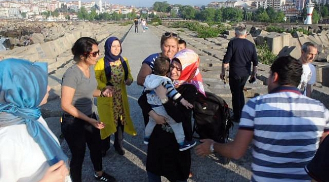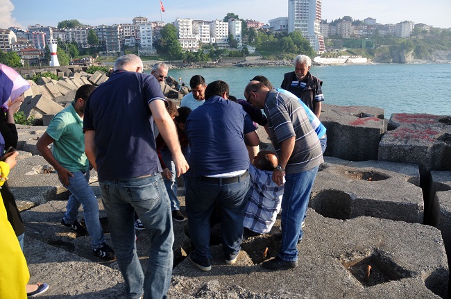 Düzce'nin Akçakoca ilçesinde balıkçı barınağında bulunan beton blokların arasına düşen 1.5 yaşındaki çocuğu, vatandaşlar tarafından sarkıtılan imam kurtardı.
