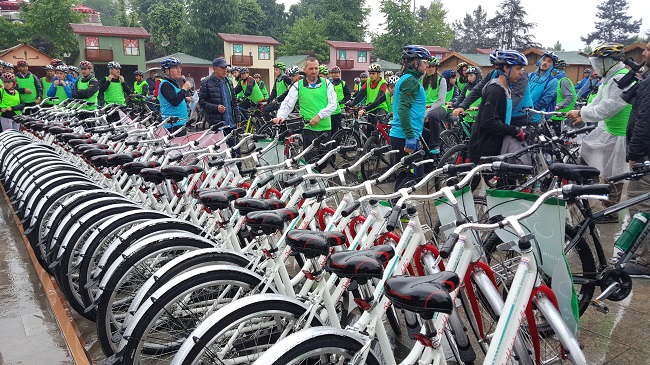 İlk kez yapılan bisiklet turuna havanın yağışlı olmasına rağmen katılım oldukça fazla olması yüzleri güldürdü.