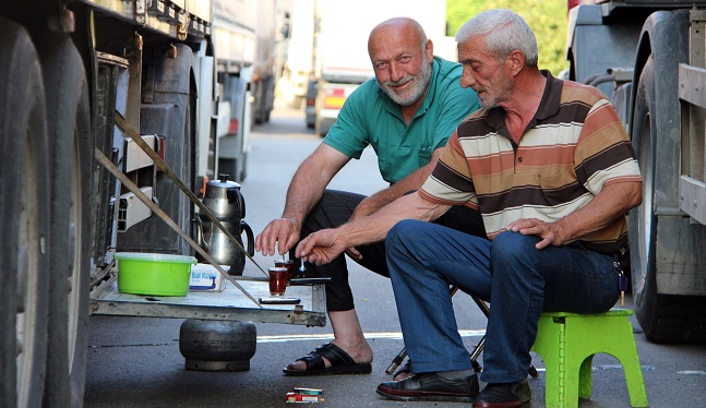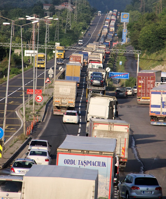 Sürücüler, trafik nedeniyle yol kenarında beklediklerini belirterek, “Yoğun trafik nedeniyle dur-kal yapamıyoruz. Araçlarımız tonajlı olduğu için hem mazotu fazla yakıyoruz hem de trafik açısından tehlikeli oluyor. Kaza olma olasılığı oluyor. Bu sebeple araçlarımızı yol kenarına çektik trafiğin açılmasını bekliyoruz. Trafik açılana kadar mecburen burada bekleyeceğiz” dedi.