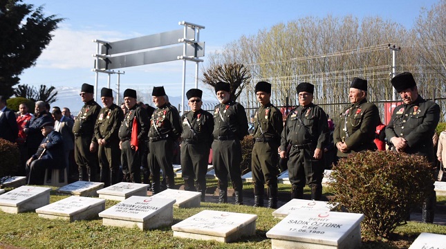 18 Mart Çanakkale Şehitlerini Anma Günü tüm yurtta olduğu gibi Düzce’de de anıldı. 104 yıl önce destansı zafere imza atan şehitlerimiz vesilesi ile Düzce Şehitliğinde bir araya gelen Düzce Valisi Dr. Zülkif Dağlı, MHP Milletvekili Ümit Yılmaz, Düzce Belediye Başkanı Dursun Ay, İl Jandarma Komutanı Albay Mustafa Çetinkaya, İl Emniyet Müdürü Hüseyin Deniz, Düzce Baro Başkanı Azade Ay, Düzce Üniversitesi Rektörü Prof. Dr. Nigar Demircan Çakar, kurum müdürleri, STK temsilcileri, gaziler, şehit aileleri ve vatandaşlar şehitlikte saygı duruşunda bulundu.