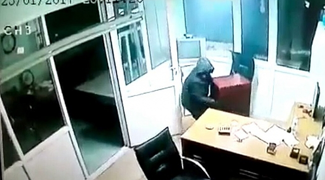 Hırsızlık olayı geçtiğimiz Pazartesi gecesi saat 23.00 sıralarında Cumayeri ilçesinde meydana geldi. Cumayeri ilçesinde fındık esnafı olan Sezai Kahraman ve İbrahim Koz mesai bitiminde dükkanın kepenklerini kapatarak ayrıldılar. Sabah iş yerine geldiklerinde kasanın yerinde olmadığını fark ettiler. Kasa, açılmış vaziyette iş yerinin yanında bulundu. Olay yerine gelen polis ekipleri, güvenlik kameralarını inceledi. Yapılan incelemede kasanın hırsız tarafından taşındığı tespit edildi. Görüntülerde hırsızın fındık dükkanın içinde bulunan büroya girdiği ve yüzünün maskeli elinde ise levye olduğu görülüyor. Maskeli hırsız bir müddet çekmeceleri karıştırdıktan sonra büroda bulunan çelik kasa uğraşıyor. Kasayı açmakta başarılı olamayan maskeli hırsız güvenlik kamerasını fark edince, 150 kiloluk para kasasını güvenlik kamerasının görüş alanının dışına taşıyor. Levye ile kasayı patlatan maskeli hırsız, içinde bulunan 6 bin TL'yi parayı aldı.