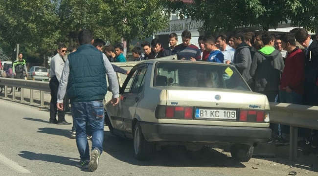 Kaza, D-655 Akçakoca, Ereğli, Zonguldak Batı Karadeniz bağlantı yolu Çoban mevkisinde meydana geldi. Edinilen bilgiye göre, Karaca Mahallesi'nde yan yoldan Akçakoca istikametine gitmek için yola çıkan Bilal K. idaresindeki 81 KC 109 plakalı özel otomobil, sürücüsünün direksiyon hakimiyetini kaybetmesi sonucu önce refüje ardından yol kenarındaki bariyere çarparak durdu. Kazada otomobilde yolcu olarak bulanan Betül K. yaralandı.