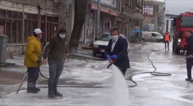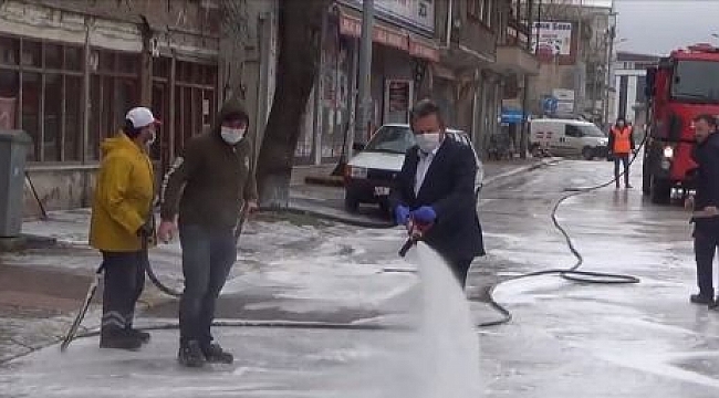Cumayeri Belediyesi, tüm Dünya’da olduğu gibi ülkemizde de büyük bir tehdit oluşturan Yeni Tip Korona Virüs (COVİD-19) ile mücadele etmeye devam ediyor. Alınan önlemleri gün geçtikçe daha da sıkı hale getiren cumayeri Belediyesi ilçe merkezinde bulunan cadde ve sokakları köpüklü su ile yıkamaya devam ediyor. Belirli Aralık’lar ile yapılan cadde yıkamalarının devam edeceğini belirten Cumayeri belediye Başkanı Mustafa Koloğlu’da ekipleri yalnız bırakmayarak onlara yardım etti. Salgın ile mücadele de her türlü tedbiri alacaklarını belirten Koloğlu “ Belediye ekiplerimiz düzenli Aralık’lar ile ilçe merkezinde bulunan cadde ve sokaklarda köpüklü su ile yıkama çalışmalarını sürdürüyor. Birlik ve beraberlik içerisinde bu zorlu günleri atlatacağız. Biz sizler için sahalarda her türlü önlemi alıyoruz siz evinizde kalın Cumayeri “ dedi.