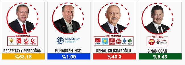 İlk gelen sonuçlara göre Cumhurbaşkanlığı Seçimi oranları şöyle: