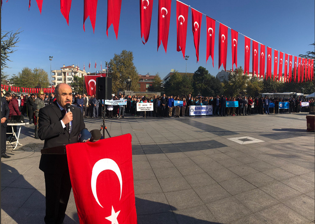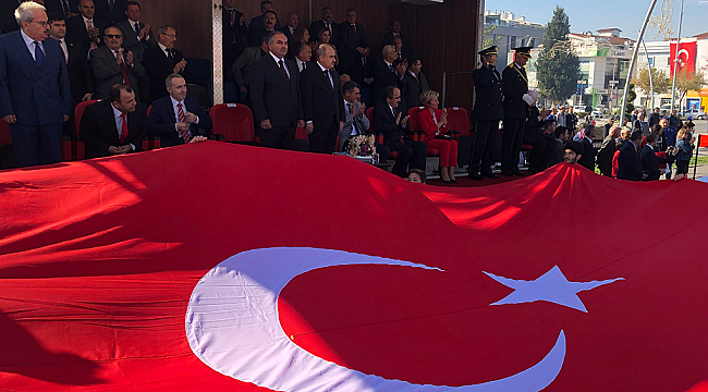 VALİ DAĞLI KONUŞMA YAPTITörende konuşma yapan Vali Dağlı, “Ay yıldızlı al bayrağımız ve Ezan seslerinin gölgesinde, şanlı tarihimizin, Akçakoca Beylerin, Konuralp Gazilerin yurdunda Başta Gazi Mustafa Kemal Atatürk olmak üzere son devletimizi kuranların, kahraman ecdadımızın ve aziz şehitlerimizin manevi huzurunda Cumhuriyetimizi kuranlara şükran hislerimizi ifade etmenin, huzur, güven, birlik ve beraberlik içerisinde Cumhuriyetimizin kuruluş yıl dönümünü kutlamanın gurur ve mutluluğunu yaşıyoruz. Cumhuriyetimizin 95. Kuruluş yıl dönümü düzce halkımıza ve aziz milletimize kutlu olsun. Bu aziz millet Bayrağımızı namertlere çiğnetmedi ve çiğnetmeyecek. Tüm halkımız bilmektedir ki bunlar dün Asala iken bugün FETÖ, PKK ve DAEŞ olarak karşımıza çıkmaktadır.Uyanık olmazsak yarın başka isimlerle karşımıza çıkacaklar. Bunlar 100 yıl önce emellerini gerçekleştirememiş olanların uzantılarıdır. Bu oyunlara karşı uyanık olmak, birliğimizi ve beraberliğimizi güçlendirmek, ortak varlığımız olan Cumhuriyete sahip çıkmak ülkemizi daha müreffeh yarınlara taşımak için azim ve kararlılıkla çalışmak hepimizin en önemli görevidir. Cumhuriyetimizin 100. yılını kutlamaya 5 yıl kaldı. Birlik ve beraberliğimizi üst seviyeye çıkartacağız. Kardeşlik bağlarımızı güçlendireceğiz. Hakkaniyet, adalet, demokrasi, insan hakları gibi evrensel değerleri kendimize prensip edineceğiz. 2023 hedeflerine ulaşma noktasında Düzce’nin katkısını en üst seviyeye çıkartmak için gayret göstermeliyiz. Halkımızın bu yoldaki azim ve kararlılığı en büyük teminatımızdır” dedi.