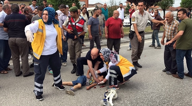 Düzce'de bisikletle karşıdan karşıya geçmeye çalışırken otomobilin çarptığı iki çocuk yaralandı.