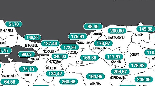 Sağlık Bakanlığı, iller bazında son bir haftada koronavirüs vaka sayılarını açıkladı.Düzce'de 21-27 ağustos tarihleri arasında vaka sayısı 100 bin kişide 172,36 kişi oldu. Geçen hafta Düzce'de toplam 680 kişi koronavirüse yakalandı.Bir önceki hafta, yani 14-20 Ağustos tarihleri arasındaki hafta düzce ilindeki koronavirüs hasta sayısı 100 bin kişide 141,53 idi. Bir önceki hafta koronaya yakalanan kişi sayısı ise 565'ti.