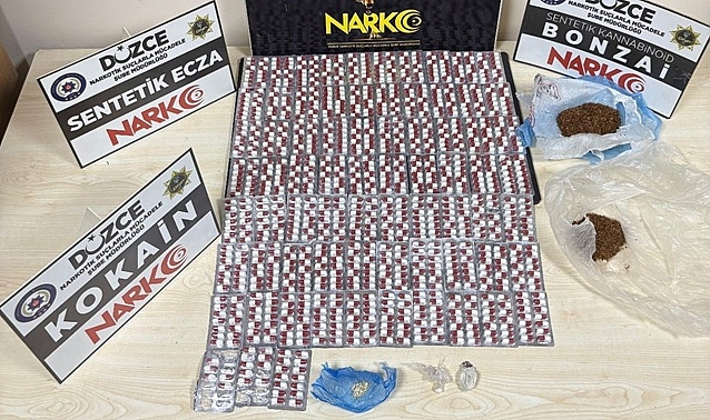 Düzce’de düzenlenen uyuşturucu operasyonunda 4 torbacı yasaklı maddelerle yakalandı, Düzce Cumhuriyet Başsavcılığının koordinesinde Narkotik ve Asayiş ekipleri tarafından operasyon düzenlendi. Operasyonlarda iki parça halinde 6 gram bonzai ham maddesi (600 gram bonzai elde edilebilecek ham madde), bin 566 adet uyuşturucu hap, 1 gram kokain, iki parça halinde 65 gram bonzai ele geçirildi.Uyuşturucu ve yasaklı maddeleri bulunduran ve sattığı belirlenen 4 kişi çıkarıldıkları mahkemece tutuklandı.