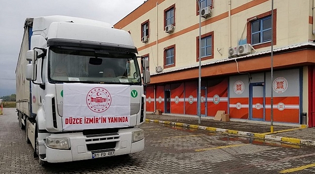 İzmir'de meydana gelen deprem sonrası Düzce'de başlatılan yardım kampanyasında toplanan yardım malzemeleri depremzedelere ulaştırılmak üzere yola çıktı.Düzce Valiliği SYDV, düzce Belediyesi Sosyal Yardım İşleri Müdürlüğü ve Kızılay Düzce Şubesinin organize ettiği ‘’Düzce İzmir’in Yanında’’ yardım tırına Düzce Gençlik Spor İl Müdürlüğü, Düzcespor, Su Damlası Anaokulu, Bahçeşehir Koleji, Anıl Market, Uğur Okulları, Senso Kozmetik Ürünleri ve bireysel olarak nakdi bağış yapan vatandaşlardan toplanan gıda, battaniye, maske, su ve giyim eşyaları SS Düzce Kooperatif Başkanı Orhan Yılmaz'ın desteğiyle İzmir’e gönderildi.Yardım kampanyasına katılan Düzcespor yönetim kurulu tarafından öncelikli olarak depremzede çocuklar düşünüldü ve çikolata ile oyuncaklardan oluşan paketler gönderildi. Kısa süre içinde hazırlanan paketler İzmir’de dağıtıldı.17 Ağustos ve 12 Kasım 1999 depremlerinde Düzce’ye yurdun dört bir köşesinden yardım yapıldığını hatırlatan Düzcespor Yönetimi kampanya konusunda şu bilgileri verdi: “ Bu acıyı en iyi biz biliriz. İzmir’in acısı bizim acımızdır. Bu tür felaketler en çok çocukları etkiliyor. Bu yüzden biz de çocukları düşündük. Bir nebze oyalamak, gülümsetebilmek için oyuncak ve çikolata hazırladık, gönderiyoruz.”