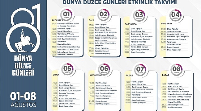 Ağustos ayının 1’i itibariyle başlayarak 8 gün boyunca sürecek olan Dünya Düzce Günleri ile birbirinden ünlü isimleri ağırlamak için gün sayıyor.