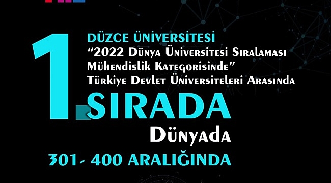 Düzce Üniversitesi, Times Higher Education Dünya Üniversite Sıralaması 2022’de Mühendislik kategorisinde, önemli bir çıkışa imza atarak, Türkiye’de Devlet Üniversiteleri arasında birinci oldu.Kuruluşundan günümüze başarı çıtasını hızla yükselten Düzce Üniversitesi, yaptığı çalışmalarla Türkiye’de Mühendislik kategorisinde ön sıralarda yer almasının yanında, dünya genelinde de lider üniversiteler arasına girmeyi başardı. Türkiye genelinde 3. olan Düzce Üniversitesi, ülkemiz devlet üniversiteleri arasında 1. sırada yer alarak akademi dünyasında dikkatleri üzerine çekmeyi başardı.Bilimden sanata, spordan kültürel çalışmalara kadar önemli başarılara imza atan Düzce Üniversitesi, Mühendislik kategorisinin atıf alanında devlet üniversiteleri içerisinde ikinci, sanayi gelirleri arasında üçüncü, personel başına düşen öğrenci sayısında dördüncü olarak yer aldı.Dünya sıralamasında Düzce Üniversitesi daha önce; sanayi gelirinde 258. sırada, Klinik ve Sağlık alanlarında 600-700’lük dilimde, Dünya Etki Sıralaması’nda "Açlıkla Mücadele" konusunda dünyada 3. Türkiye’de ise 1. sırada ye alma başarısını gösterdi.