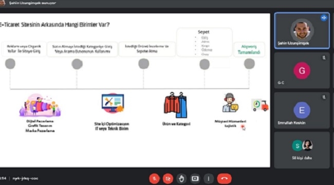 Düzce Üniversitesi İş Dünyasında Kadın Topluluğu tarafından düzenlenen “E-Ticaretin Yolculuğu” başlıklı programda E-Ticaret 101 Akademi kurucularından Şahin Uzunşimşek, öğrencilerle bir araya geldi.Google Meet üzerinden gerçekleştirilen etkinlikte Şahin Uzunşimşek, öncelikle eğitim, en az iki yabancı dil bilme ve stajın önemi üzerinde durdu. E-ticarette kişilerin satın alma deneyimlerinin ve araçlarının bilinmesi gerektiğinden bahseden Uzunşimşek, bu alanda kullanıcı yorumlarının, alınacak ürünün dışarıda daha zor bulunmasının ve indirim takibinin kolaylığının büyük rol oynadığına işaret etti.Pandemi ile birlikte kişilerin evde daha çok vakit geçirmesinin, elektronik cihazlardaki zaman geçirme süresini ve çevrimiçi alışverişi artırdığını söyleyen davetli konuşmacı, insanların alışkanlıklarının ve satın aldığı ürün kategorilerinin büyük oranda değiştiğini grafiklerle gösterdi. Artık insanların dışarıdan alacağı ürüne bile önce internetten baktığını belirten Şahin Uzunşimşek, kişilerin bu çevrimiçi mağazalara büyük oranda reklam yoluyla geldiğini sözlerini ekledi.Girişimcilerin yanı sıra dijital pazarlama, grafik tasarım, marka pazarlama, bilgi işlem ve teknik birim çalışanlarının da çevrimiçi alışveriş sitelerinde iş bulma imkanlarının olduğunu ifade eden konuşmacı, dijital pazarlama çalışanlarının günlük iş takiplerinden örnekler verdi.Çevrimiçi alışverişte kullanılan cihazlar arası tanıma, ürün öneri ve arama barı algoritmaları, artırılmış gerçeklik ile ürün deneme teknolojileri sayesinde 2021 yılında; hızlı alışveriş, kapıya teslimat, temassız teslimat ve kapıda ödemenin yeni alışveriş şekilleri olduğunu söyleyen Şahin Uzunşimşek, 2022 yılında alışveriş platformları ile sosyal medya platformlarının daha fazla birleşeceğini, “super apps” denilen alışveriş uygulamalarının çoğalacağını ve çevrimiçi alışverişin daha da artacağını dile getirdi.Bu sektöre yatırım yapmak için geç kalınmadığını ifade eden Uzunşimşek, dünyada internetten alışveriş oranının sadece %15 olduğunu söyleyerek bu oranın daha da artmadan girişimcilerin E-ticaret sektörüne adım atabileceğini belirtti. Program soru-cevap bölümünün ardından sona erdi.