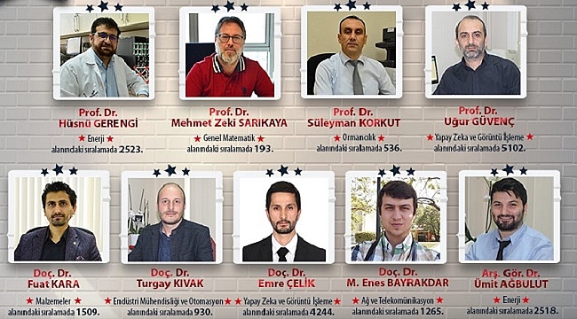 Stanford Üniversitesi'nden J. P. A. Ioannidis, K. W. Boyack ve J. Baas'ın Plos Biology dergisinde yayınlanan “Updated Science-Wide Author Databases of Standardized Citation Indicators” başlıklı makalesine göre, Düzce Üniversitesi akademisyenleri dünyada 100 binden fazla akademisyenin değerlendirildiği listeye girme başarısı gösterdi.22 bilimsel ve 176 alt alan arasından çeşitli kriterlere oluşturulan dünyanın en etkili bilim insanları listesinde; Düzce Üniversitesi Fen Edebiyat Fakültesi’nden Prof. Dr. Mehmet Zeki Sarıkaya, Orman Fakültesi’nden Prof. Dr. Süleyman Korkut, Mühendislik Fakültesi’nden; Prof. Dr. Hüsnü Gerengi, Prof. Dr. Uğur Güvenç, Doç. Dr. Emre Çelik, Doç. Dr. Fuat Kara, Doç. Dr. Turgay Kıvak, Doç. Dr. Muhammed Enes Bayrakdar ve Arş. Gör. Dr. Ümit Ağbulut yer aldı.Yayınlanan listede, Genel Matematik alanında Prof. Dr. Mehmet Zeki Sarıkaya 193, Ormancılık alanında Prof. Dr. Süleyman Korkut 536, Endüstri Mühendisliği ve Otomasyon alanında Doç. Dr. Turgay Kıvak 930, Ağ ve Telekomünikasyon alanında Doç. Dr. Muhammed Enes Bayrakdar 1.265, Malzemeler alanında Doç. Dr. Fuat Kara 1.509, Enerji alanında Arş. Gör. Dr. Ümit Ağbulut 2.518, yine Enerji alanında Prof. Dr. Hüsnü Gerengi 2.523, Yapay Zeka ve Görüntü İşleme alanında Doç. Dr. Emre Çelik 4.244 ve yine Yapay Zeka ve Görüntü İşleme alanında Prof. Dr. Uğur Güvenç 5.102. sırada yer aldı.Düzce Üniversitesi tarafından yapılan açıklamada, “Üniversitemizin uluslararası başarılarına katkı sunan akademisyenlerimize teşekkür ediyor, başarılarının devamını diliyoruz.” ifadelerine yer verildi.