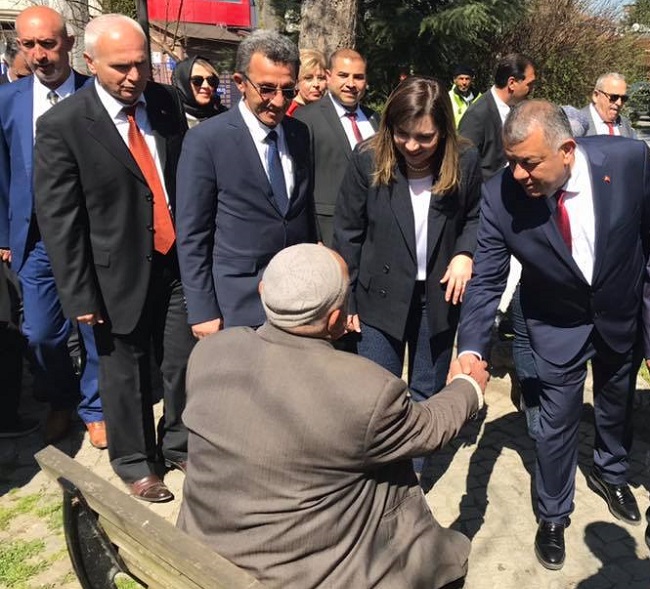 Vekiller ve heyet daha sonra Spor Sokak ve Gaziantep Caddesi esnafını ziyaret ederek, adaylarına destek istedi.