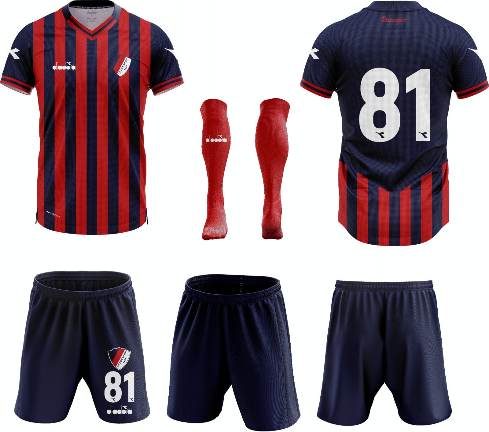 Düzcespor’un 2021-2022 sezonunda giyeceği formalar belli oldu.Efsane çubuklu forma bu sezonda kullanılacak olup, iki yeni forma kamuoyuna duyuruldu.İç saha forması olarak çubuklu forma belirlenirken, dış sahada ise beyaz forma üzerine yatay şeritli kırmızı lacivert formayla mücadele edilecek.Kulüp renkleri baz alınarak iki ayrı forma olarak futbolcuların yeni sezonda giyecekleri formaların markası ise Diadora markası oldu.Formaların kısa bir süre içerisinde üretimi tamamlanacak ve Düzcespor STORE mağazalarında da satışa çıkacak.