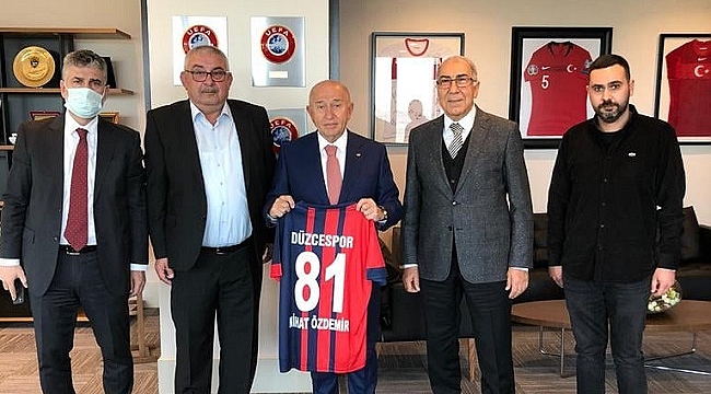 Hasan Doğan Milli Takımlar Kamp ve Eğitim Tesisleri’nde gerçekleşen ziyarette, Düzcespor İkinci Başkanı zekeriya korkmaz ve eski Kulüp Başkanlarından ahmet kurtuluş yer aldı. Ahmet Kurtuluş’unda aynı zamanda memleketlisi olan tff Başkanı Nihat Özdemir ile düzcespor hakkında görüşme gerçekleştiren Yönetim Kurulu taleplerini Başkan Özdemir’e iletti.Gökhan Kapoğlu ve yeni yönetim kurulu, göreve başlamasıyla birlikte kulübün vizyonunu değiştirerek Düzcespor’u Türkiye’de örnek bir kulüp haline getirdi. Yapılan çalışmalar ve kazanılan başarılar ile örnek bir kulüp haline gelen Düzcespor yeni yönetim kurulunun üst düzey bağlantıları sayesinde TFF ile ilişkilerini güçlendirdi.Kulüp olarak elde edilen başarıların üstünün kapanmaması için çalışmalarını sürdüren Düzcespor Yönetim Kurulu TFF Başkanı Nihat Özdemir ile istişare toplantısı gerçekleştirerek Özdemir’den Düzcespor maçına gelme sözü aldı. Ziyaretin ardından İkinci Başkan Korkmaz Nihat Özdemir’e Düzcespor forması hediye etti.