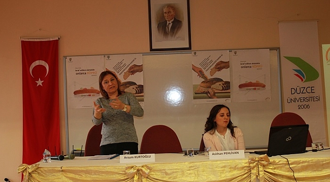 Düzce İl Gıda Tarım ve Hayvancılık Müdürlüğünde görev yapan Arzum Kurtoğlu ve Gıda Mühendisi Aslıhan Pehlivan’ın davetli konuşmacı olarak yer aldığı konferansa, akademik, idari personeller ve öğrenciler katıldı.