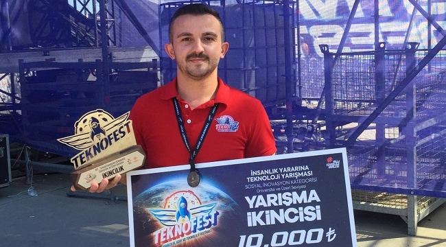 İnsanlık Yararına Teknolojiler Sosyal İnovasyon Kategorisi, Üniversite ve Üzeri Seviyesi’nde yarışan Ömer Ecir, pandemi öncesi marketlerin ekmek, manav reyonlarında kullanılan, pandemi sonrası ise kullanımı artan şeffaf/poşet eldivenlerin kolay kullanımını sağlayan otomatik eldiven giydirme makinesi geliştirdi. Eldivenmatik ismini verdiği bu ürün sayesinde saniyeler içerisinde hijyenik ve temiz eldivenler giyilebilecek. Ayrıca Eldivenmatik kullanıcılarına kolay kullanım ile temassız eldiven giyme kolaylığı ve hijyenik dokunma olanağı sunacak.Konu ile ilgili açıklamalarda bulunan Ömer Ecir, “Daha önce üniversitemizin düzenlediği proje yarışmaları dahil birçok Ar-Ge proje pazarı etkinliğine katıldım. Bunlar arasında; KTÜ'de düzenlenen Ar-Ge proje pazarında 1.lik ödülü, TÜBİTAK 2238 İstanbul Bölge Sergisi 3.lük ödülü ve Mersin Üniversitesi Ar-Ge proje pazarı 3.lük ödülleri aldım. Fakat TEKNOFEST benim için çok farklı bir deneyim farklı bir heyecan ve farklı bir yarışma oldu. Yüzlerce, binlerce proje arasından seçilen projeler arasında yarışmak ve 2.lik ödülü almak zor ve bir o kadar heyecan vericiydi. TEKNOFEST çok farklı bir ruh, farklı bir enerjisi var. İçeriye girdiğiniz ilk andan itibaren içinizi saran tarifi mümkün olmayan bir his bu. Ülkemizin geleceği çocuklar, gençler… Gözleri pırıl pırıl parlayarak projelere, hava araçlarına, etkinlik alanlarına baktıklarını görmek, "güzel gelecek" umudumuzu yeşertiyor. TEKNOFEST'e çocuk, genç, yaşlı her bireyin katılması gerektiğini düşünüyorum. Projelere, Ar-Ge’ye ve teknolojiye olan destekler arttığı sürece ülke olarak hedeflerimize ulaşabileceğiz. Bu konuda bizlere düşen araştırmak, incelemek ve çok çalışmak olacaktır. Tüm bu süreçlerde desteklerini esirgemeyen başta Rektörümüz Prof. Dr. Nigar Demircan Çakar’a, danışman hocam Prof. Dr. Ali Öztürk’e ve en büyük desteği sağlayan aileme teşekkürü borç bilirim.” ifadelerine yer verdi.