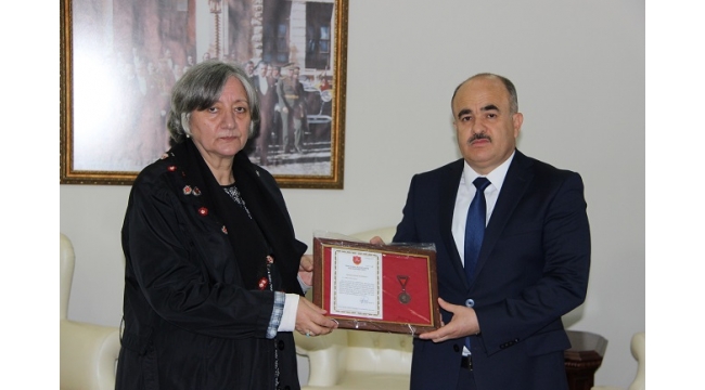 Türk Silahlı Kuvvetlerini Güçlendirme Vakfına bağışta bulunan Düzceli emekli öğretmen Firdevs Otluoğlu’na yaptığı bağıştan dolayı Vali Zülkif Dağlı tarafından Bronz madalya ve Berat Belgesi verdi.