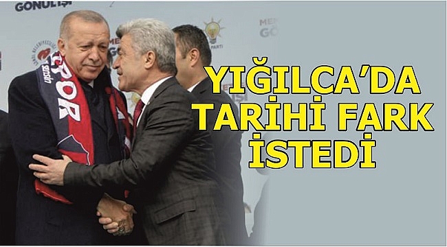 Cumhurbaşkanı ve AK Parti Genel Başkanı Recep Tayyip Erdoğan Muzaffer Yiğit'e özel ilgi gösterdi. Ulaştırma ve Altyapı Bakanı Cahit Turhan ile de görüşme fırsatı yakalayan başkan Yiğit, Yığılca- Alaplı ve yığılca - düzce arası yollar için görüşerek seneye bitirilmesi için söz aldı. "Büyük Miting" ile Düzce Belediye Başkan Adayı Faruk Özlü ve ilçe Belediye Başkan adaylarına destek için gelen Cumhurbaşkanı ve AK Parti Genel Başkanı Recep Tayyip Erdoğan Yığılca Belediye Başkanı Muzaffer Yiğit'e özel ilgi gösterdi. Yiğit’in bütün projelerine destek sözü veren Cumhurbaşkanı, Yığılca ilçesinde tarihi fark istedi.Cumhurbaşkanı Erdoğan ile bir süre sohbet etme imkanı bulan Başkan Yiğit; "Kendisine Yığılcalı hemşehrilerimizin selamını ilettim. Kendisi de hemşehrilerime selamlarını ilettiler. Projelerime destek sözü aldım. Ayrıca Ulaştırma ve Altyapı Bakanı Cahit Turhan ile görüşme fırsatı da buldum. Yığılca - Alaplı ve Yığılca - Düzce arasındaki yol çalışmaları ile ilgili kendisinden istediğimiz desteği geri çevirmedi. Yığılca yollarımız için yapacağı destek ile Yığılca yolunu önümüzdeki sene bitireceğiz. Artık Yığılca Düzce'nin en uzak ilçesi olmaktan çıkacak" şeklinde konuştu.