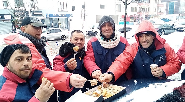 Düzce Belediyesi, geçtiğimiz hafta sonundan itibaren kenti etkisi altına alan kar yağışı ile top yekün mücadelesini sürdürüyor. Mesai mefhumu gözetmeksizin yol ve kaldırımların açılması için çalışmalarını sürdüren ekiplere esnaflar tarafından da tatlı ikramında bulunuldu.