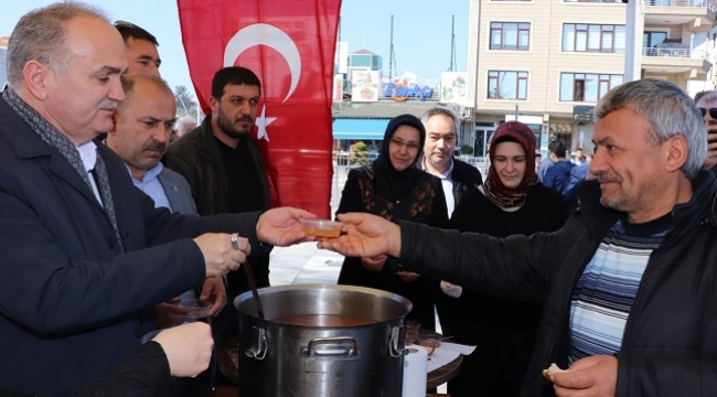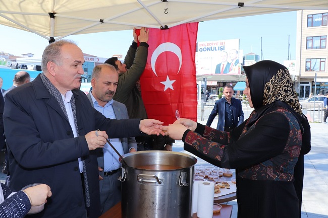 AK Parti Düzce Belediye Başkan Adayı Dr. Faruk Özlü 18 Mart Çanakkale zaferi sebebiyle vatandaşlara kuru ekmek ve hoşaf dağıtımı yaptı.