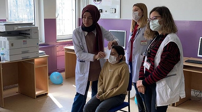 Düzce Üniversitesi Genç Yeryüzü Doktorları Topluluğu, Gölyaka Hacı Süleymanbey köyü Yeni Yaşam İlk-Ortaokulu’nda göz taraması etkinliği gerçekleştirdi.