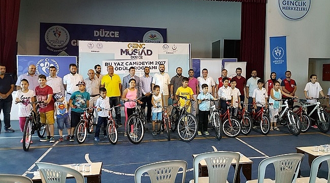 Ödül töreninde başarılı öğrencilere ödülleri olan bisiklet takdim edilirken, ilk ödülü MÜSİAD Düzce Şube Başkanı İsa Şengüloğlu verdi. Törende bisiklet hediye edilen çocuklar aileleri ile birlikte mutluluklarını paylaştı.