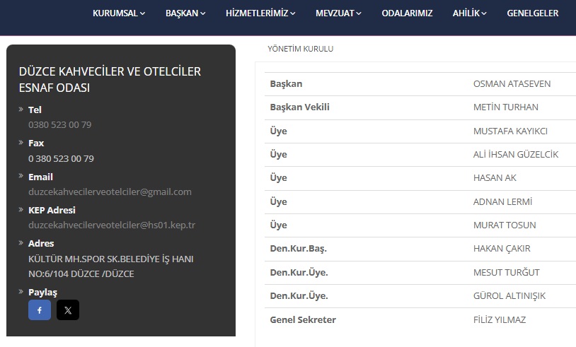 Düzce Kahveciler ve Çaycılar Esnaf Odası genel kurulu önümüzdeki hafta yapılacak.Başkan Osman Ataseven'in vefatının ardından Başkanvekili Metin Turhan, seçimler öncesi başkan adaylığını açıkladı.Kahveciler ve Çaycılar Odası'nın son seçiminde büyük bir başarı göstererek yönetime giren ve Denetleme Kurulu Başkanlığı görevine getirilen Hakan Çakır'ın, yapılacak seçimde yeni yönetime alınıp alınmayacağı henüz belli olmadı.Düzce'de uzun yıllardır kahvecilik yapan ve mesleğinde son derece başarılı olan Hakan Çakır'ın, Metin Turhan'ın yönetim listesine alınması kahveci ve çaycı esnafları tarafından isteniyor.Kahveci ve çayfı esnafları, "Hakan Çakır kardeşimiz, Düzce'nin en başarılı kahvecisi ve çaycısıdır. Geçen dönem kendisini Kahveciler ve Çayçılar Odası yönetiminde görmüştük. Başkan adayımız Metin Turhan'dan Hakan Çakır kardeşimizi yeni dönemde de yönetimine almasını istiyoruz. Hakan Çakır'ın kahveciler ve çaycılara en iyi hizmeti yapacağına gönülden inanıyoruz" ifadelerini kullandılar.Hakan Çakır'ın yer aldığı Kahveciler ve Çaycılar Odası'nın son seçiminde yer aldığı yönetim tablolusu şu şekilde: