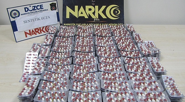 İl Emniyet Müdürlüğü narkotik Suçlarla Mücadele Şube Müdürlüğü ekiplerinin yürüttüğü çalışmalarda Darıcı Mahallesinde durumundan şüphelenilip durdurulan iki araçta ve araçlarda bulunan 5 şahsın yapılan üst aramasında; 6 bin 631 adet Sentetik Ecza Hap ile uyuşturucu hap ticaretinden elde edildiği tahmin edilen 19 bin 605 Türk lirası, 1000 Amerikan Doları ve 100 Euro para ele geçirildi.Şüpheli 5 şahıs hakkında Uyuşturucu Madde Ticareti Yapmak suçundan işlem yapıldı. 3 şüpheli şahıs Cumhuriyet Başsavcılığı tarafından tutuklamaya sevk edilerek düzce Sulh Ceza Mahkemesince tutuklandı. Diğer 2 şüpheli hakkında adli kontrol kararı verildi.