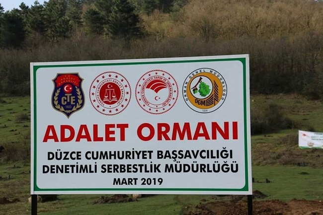 Adalet Bakanlığı Ceza ve Tevkifevleri Genel Müdürlüğünün “Ağaçlandırma ve Koordinasyon Projesi” kapsamında düzenlenen ağaçlandırma etkinliğine düzce Valisi Dr. Zülkif Dağlı ve Düzce Belediye Başkanı Dursun Ay da katıldı.Adalet Bakanlığı ile Tarım ve Orman Bakanlığı arasında imzalanan protokol gereği ‘Adalet Ormanı’ projesi hayata geçirildi. Hükümlü ve yükümlülerin sosyal faydası daha yüksek olan ağaçlandırma çalışmalarında istihdam edilerek yeniden topluma kazandırmalarının hedeflendiği ‘Ağaçlandırma ve Koordinasyon Projesi’ kapsamında ‘Adalet Ormanı’ alanına 80 yükümlü ile fidan dikildi.