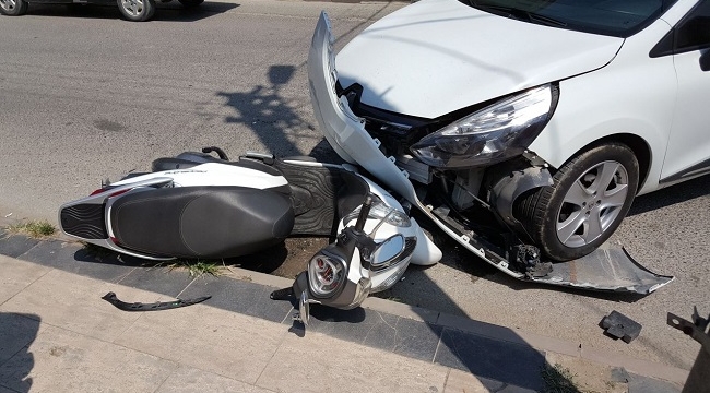 İKİ OTOMOBİL MOTOSİKLETLE ÇARPIŞTI