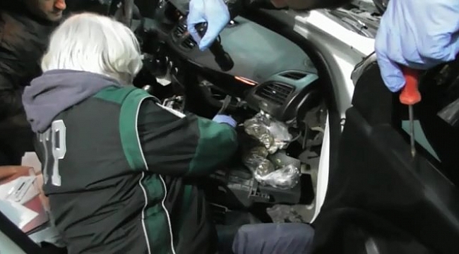Otomobilde ise narkotik köpeği Shadow yardımıyla arama yapıldı. Detektör köpek otomobilin torpido kısmına tepki verince, ekipler çalışmalarını bu yönde yoğunlaştırdı. Torpido kısmı sökülürken 1 kilo 402 gram kubar esrar maddesi, 47 gram toz esrar ve bir miktar uyuşturucu hap ele geçirildi. ‘Uyuşturucu Madde Ticareti Yapmak’ suçundan adli makamlara sevk edilen K.M.T. ve M.A. isimli 2 şüpheli tutuklandı.