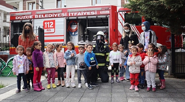 Düzce Belediyesi, bir yandan şehrin çehresini değiştirecek olan dev projelerine devam ederken biryandan da toplumsal alanda her yaştan vatandaşın bilinçlendirilmesi noktasında sosyal belediyecilik örneklerine yenilerini ekliyor.Geçtiğimiz aylarda Türkiye'nin çeşitli noktalarında yaşanan orman yangınları ve sel afetlerine gösterdiği hızlı reaksiyon ve başarılı çalışmalarıyla takdirleri üzerine toplayan Düzce Belediyesi İtfaiye Müdürlüğü, bölgede de toplumsal alanda farkındalığı arttırma çalışmalarına bir yenisini ekledi.Belediye Başkanı Dr. Faruk Özlü’nün talimatıyla ilçe ve köylerde orman yangınlarına karşı eğitimler veren itfaiye müdürlüğü, bu kez özel bir anaokulunda miniklerle bir araya geldi.Ziyarette çocuklara yangın, itfaiyecilik ve itfaiyeyi tanıtan ekipler, olası bir yangın anında neler yapmaları gerektiği konularında bilgi verdi. Yangına müdahale ekipmanlarını da çocuklara tanıtan ekipler, ayrıca yangından korunma yöntemleri, itfaiyenin önemi ve görevlerini anlattı.