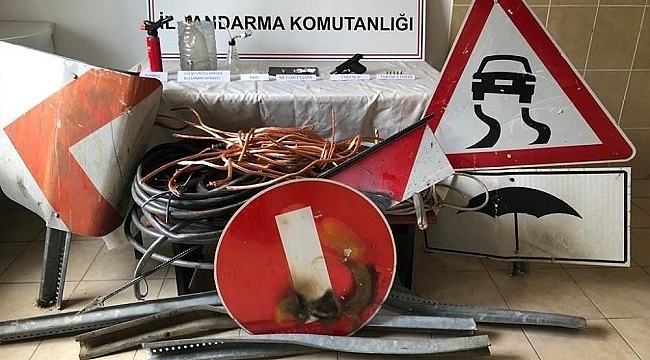 Düzce’de trafo merkezinden çalınan kabloların peşine düşen jandarma ekipleri, girdikleri hurdalıkta daha önce çalınan trafik yol tabelaları ile uyuşturucu madde yakaladı.