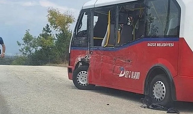 Düzce Bahçeşehir bölgesinde kamyon ile halk otobüsünün çarpışması sonucu 4 kişi yaralandı.Bahçeşehir 12. Bölgede meydana gelen kazada, kamyon ile halk otobüsü çarpıştı. Kazada minibüste bulunan 4 yolcu yaralandı. Düzce Üniversitesi Hastanesi'nde tedavi altına alınan yaralıların durumlarının iyi olduğu öğrenildi. (Kaynak: Öncü TV)